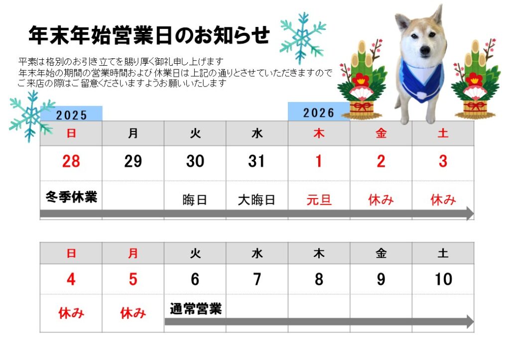 - 年末年始休業のお知らせ