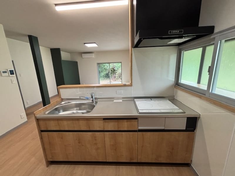 グリル調理はしないということで、三菱のIHクッキングヒーターは2口コンロのみで、グリル部分は引出収納となっています。