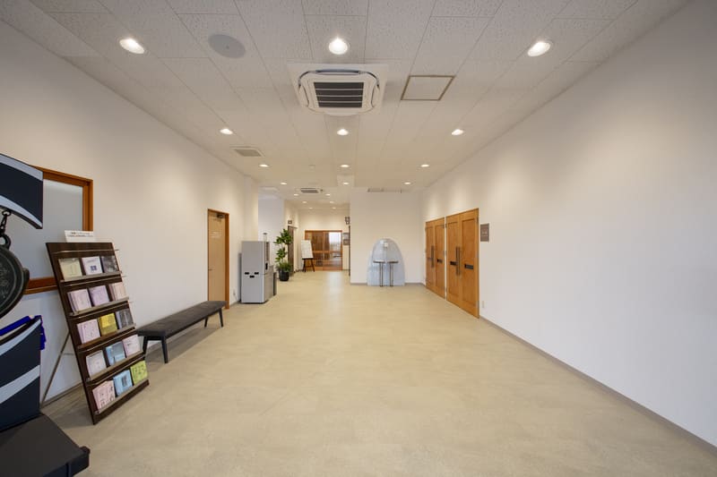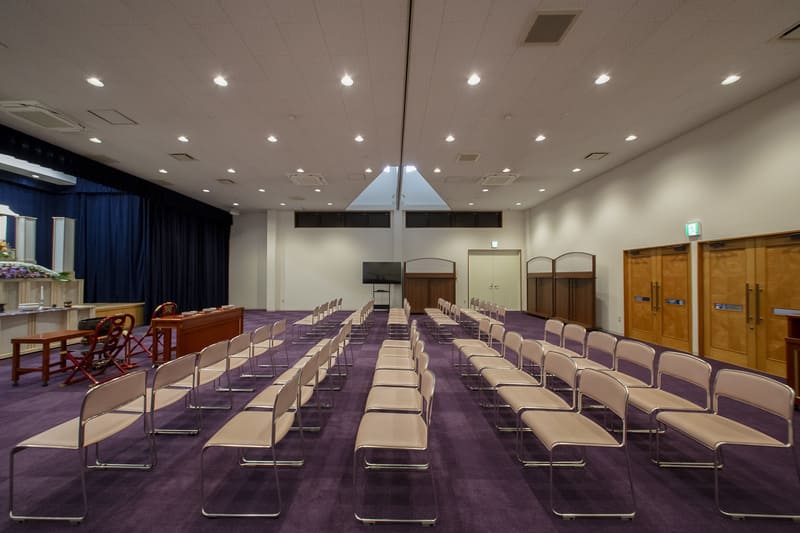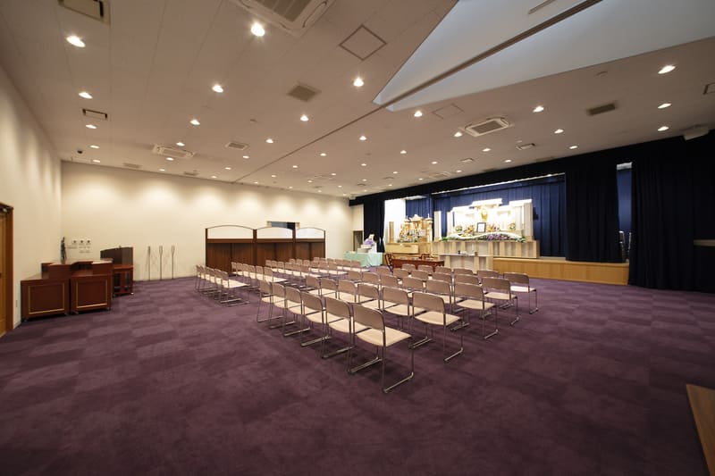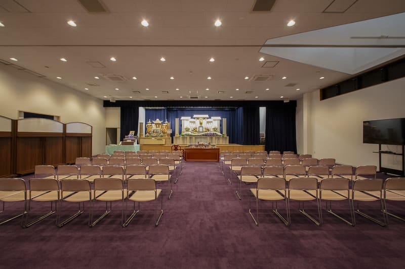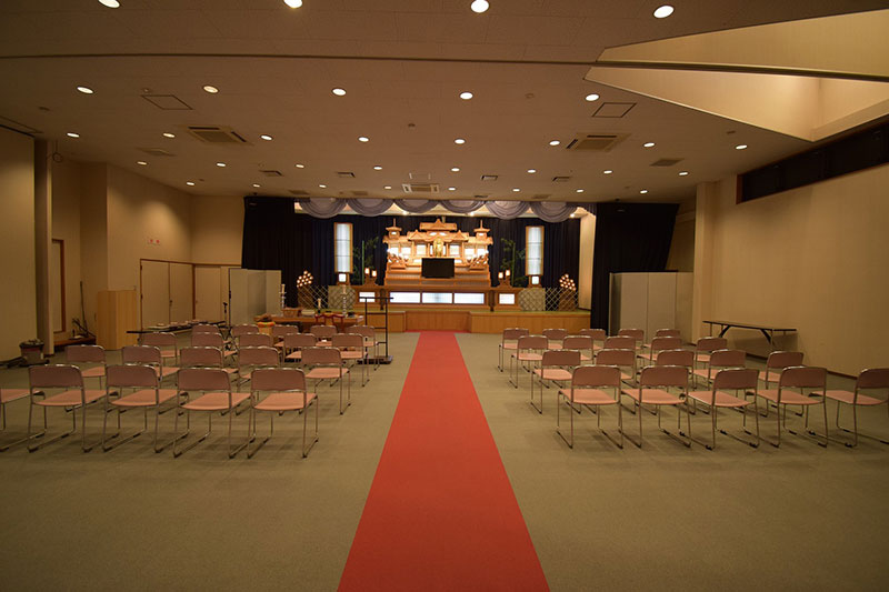 カーペットタイルや壁紙を張り替えて明るい斎場に生まれ変わりました。
