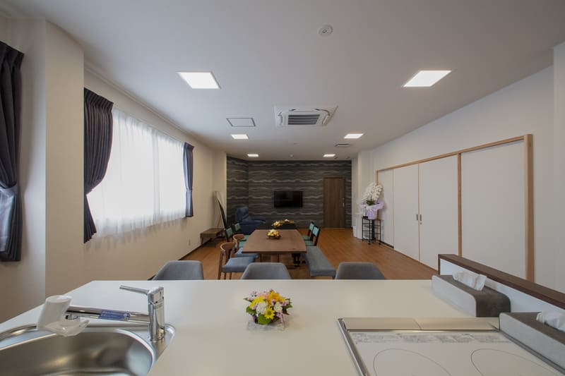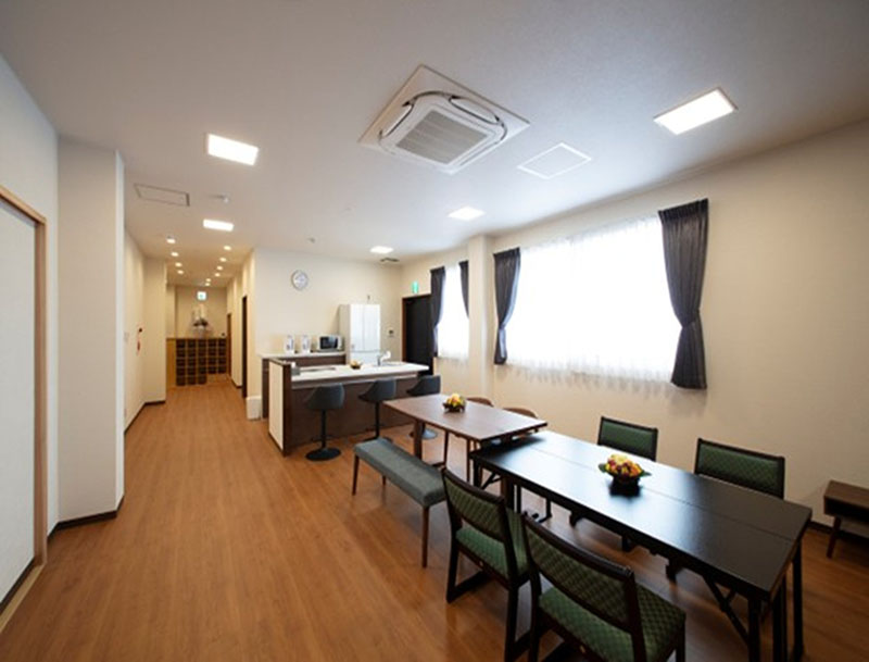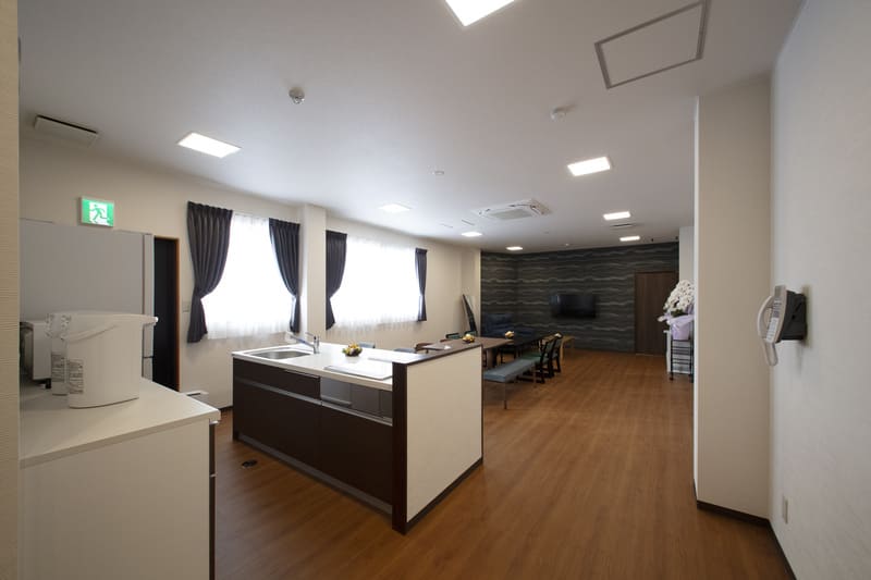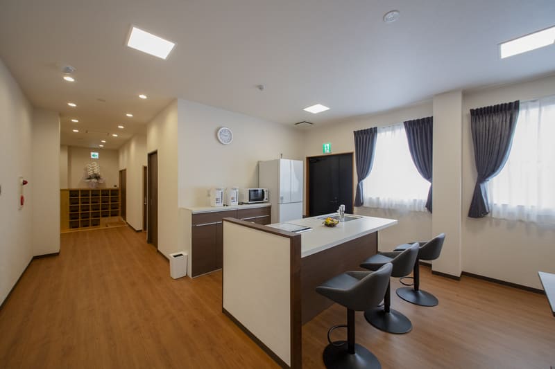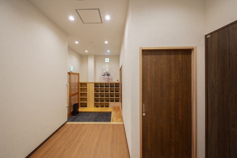ご家族様が休まる控室はブラウン系を基調とし、落ち着いた空間に仕上げました。