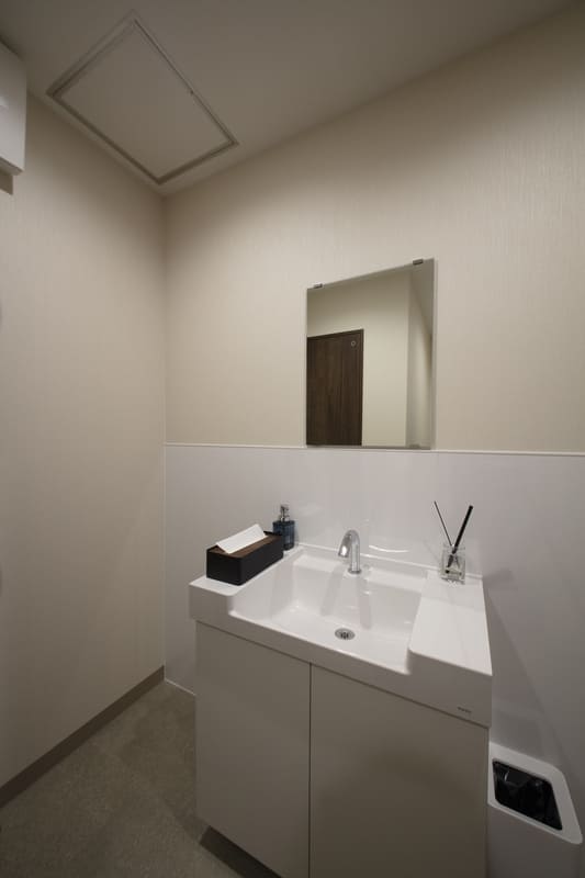 ロビーの天井は木目スパンドレルを上貼りし、間接照明を設置しました。